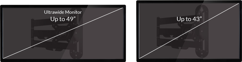 Le support mural pour moniteur ARCTIC W1C prend facilement en charge les derniers moniteurs ultra-larges (jusqu’à 49 pouces). Les moniteurs Classic 16: 9 sont également compatibles (jusqu’à 43 pouces). Le W1C supporte une charge totale de 18 kg.