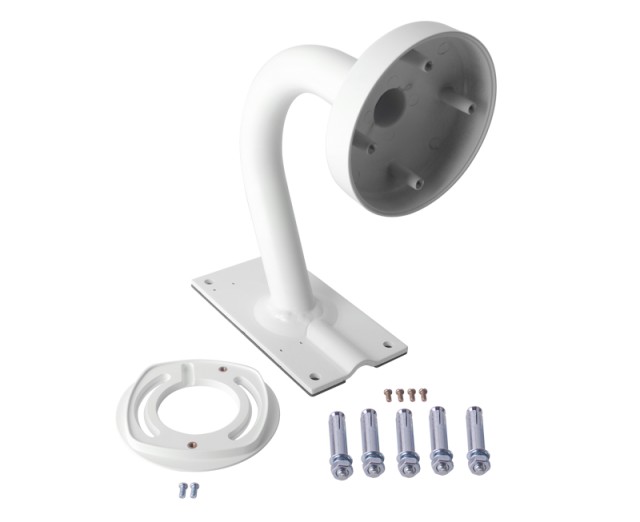 Support mural blanche intérieur / extérieur pour caméra mini-dôme adapté aux modèles DS-2CD7133-E, DS-2CD7153-E et DS-2CD7164-E, Construction alliage d'aluminium, Dimension Φ124 × 180 × 292mm Poids 960g