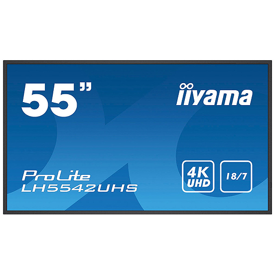 iiyama ProLite Moniteur 55’’ pour L’affichage Dynamique Professionnel en Résolution 4K UHD 3840 x 2160 pixels 16:9 - IPS - 1300:1 - 500 cd/m² - 9 ms - Android OS - HDMI/DP/VGA/DVI - Ethernet - Haut-parleurs intégrés - 18/7 - Noir. Découvrez une dalle IPS lumineuse avec fonctionnement 18/7, une installation en mode portrait/paysage ainsi qu'Android OS 8.0. (LH5542UHS-B3)